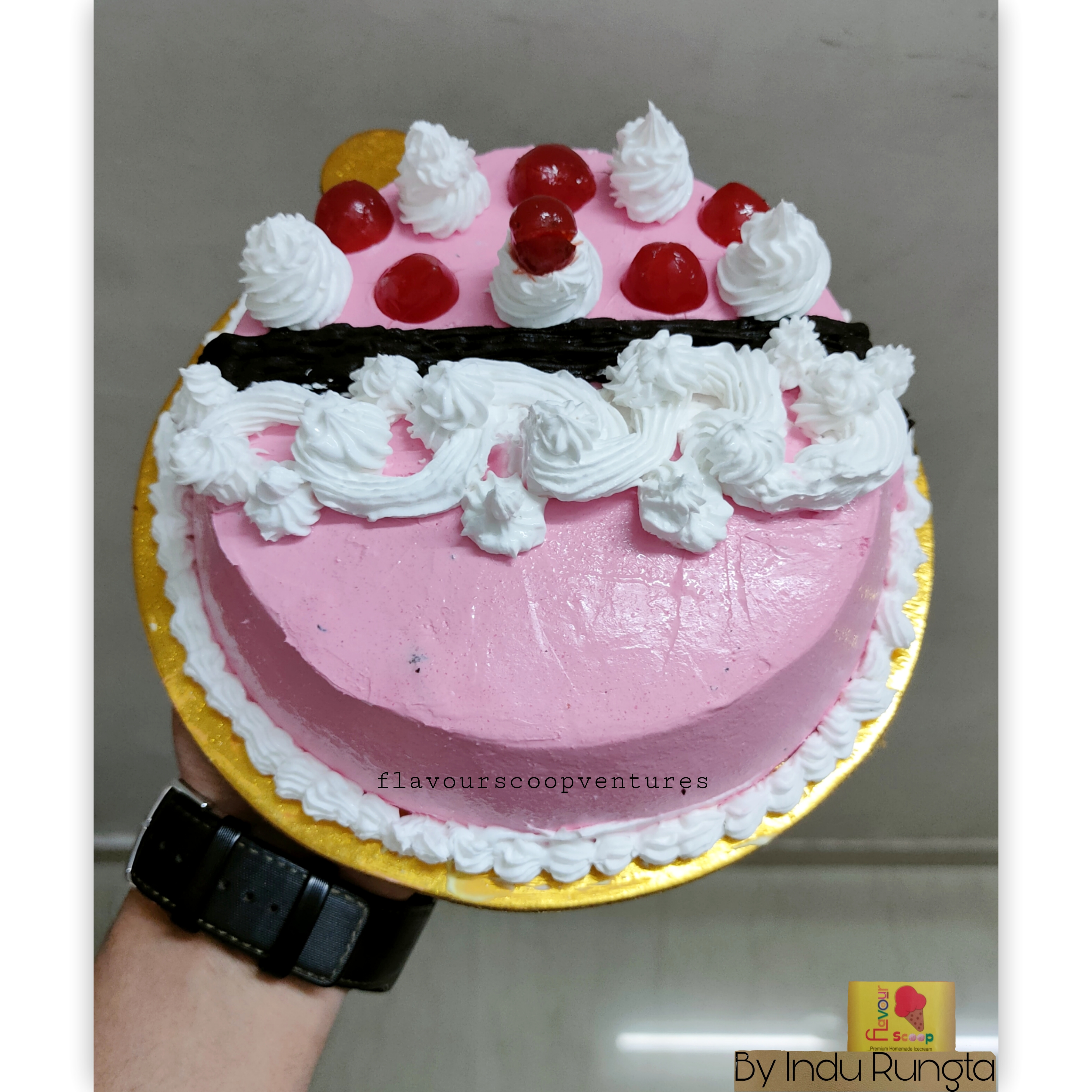 black forest cake in pink effect
