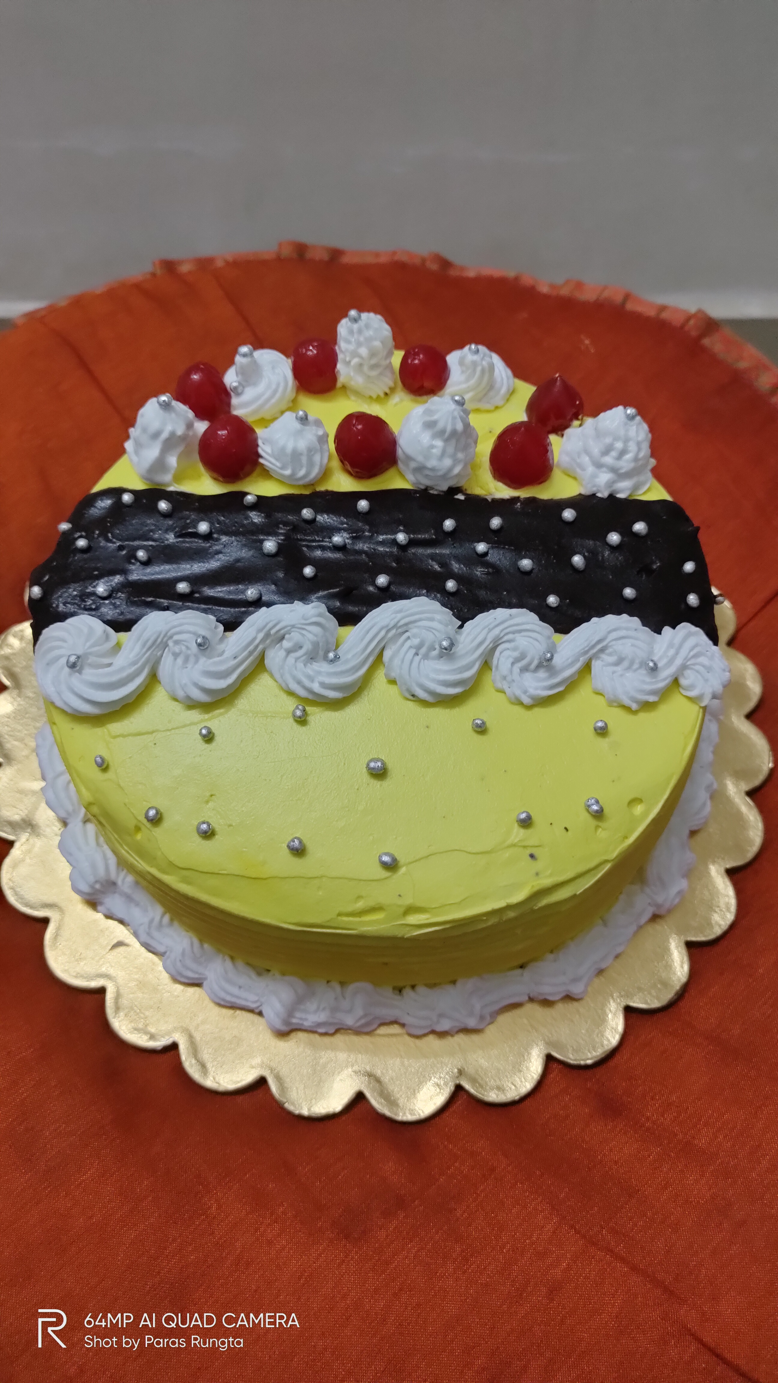 black forest cake in yellow effect